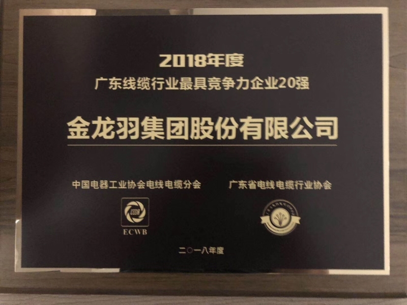 廣東線纜行業最具競爭力企業20強牌匾